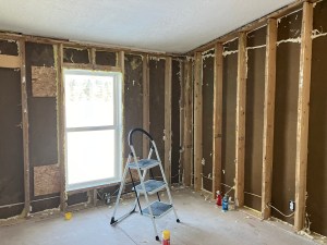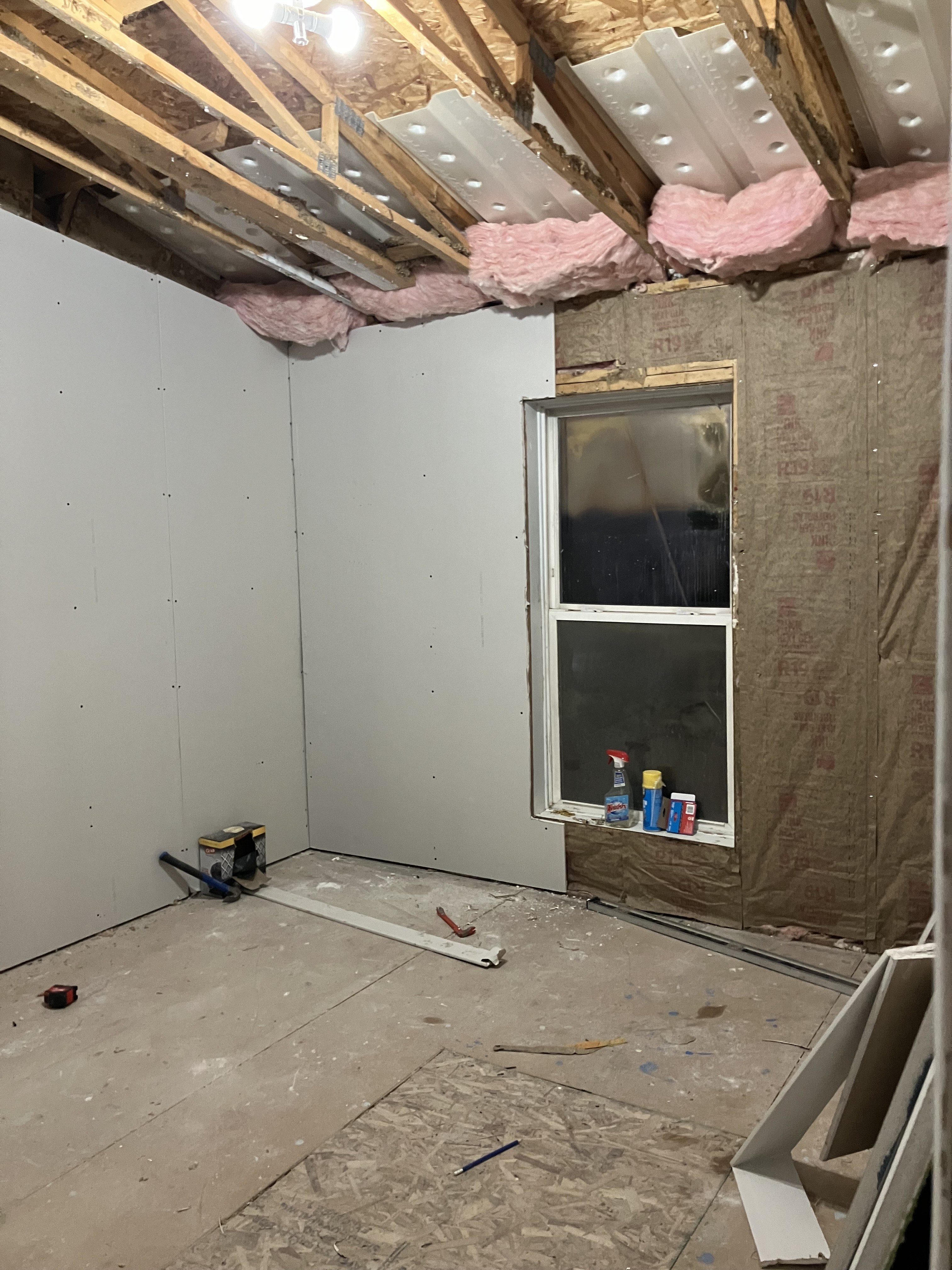 The first project we did on our house this year was taking out the exterior walls in the bedroom that will to be Teddy’s bedroom. We replaced the insulation and drywall, then started the long process of mudding and sanding.