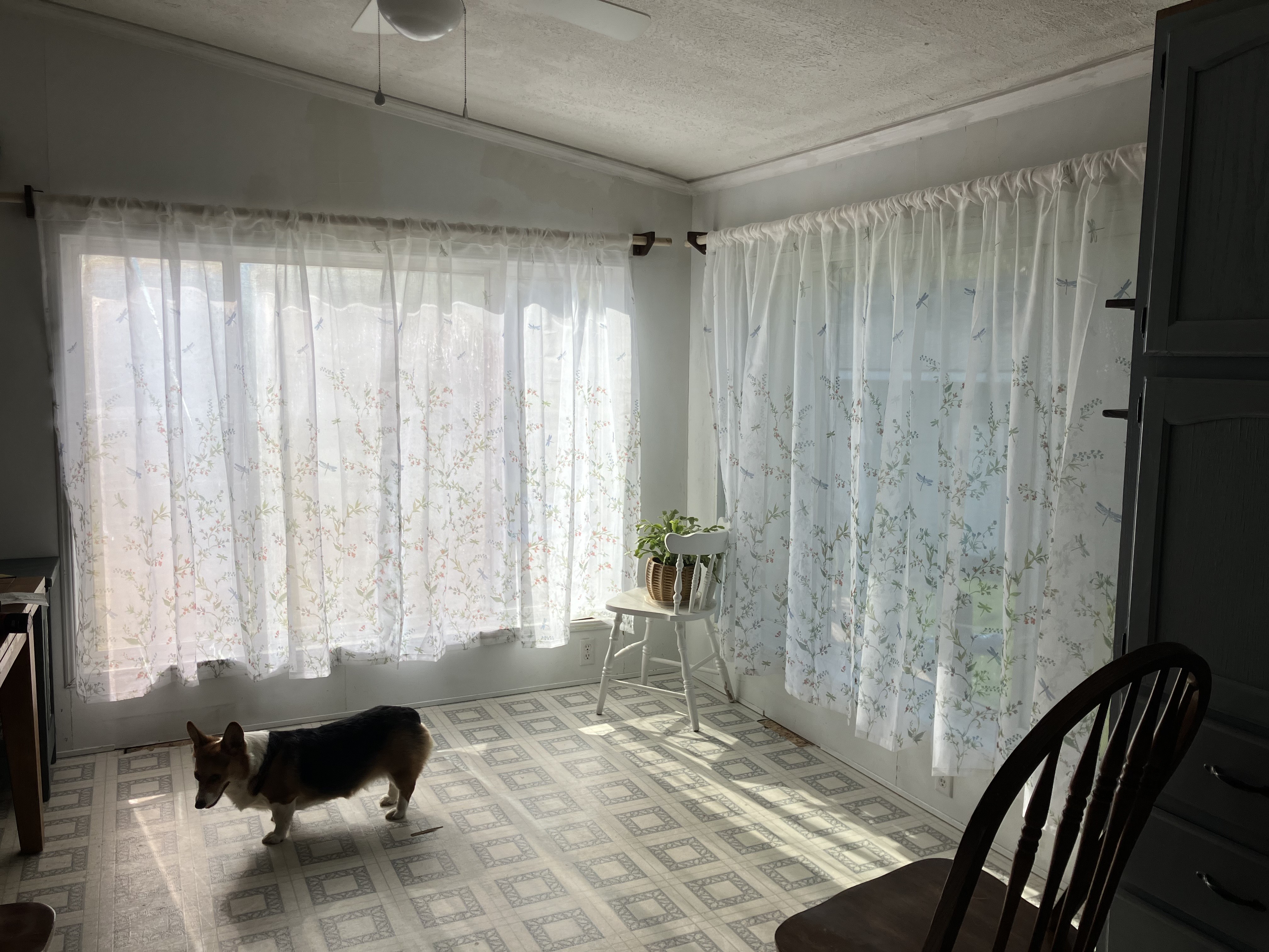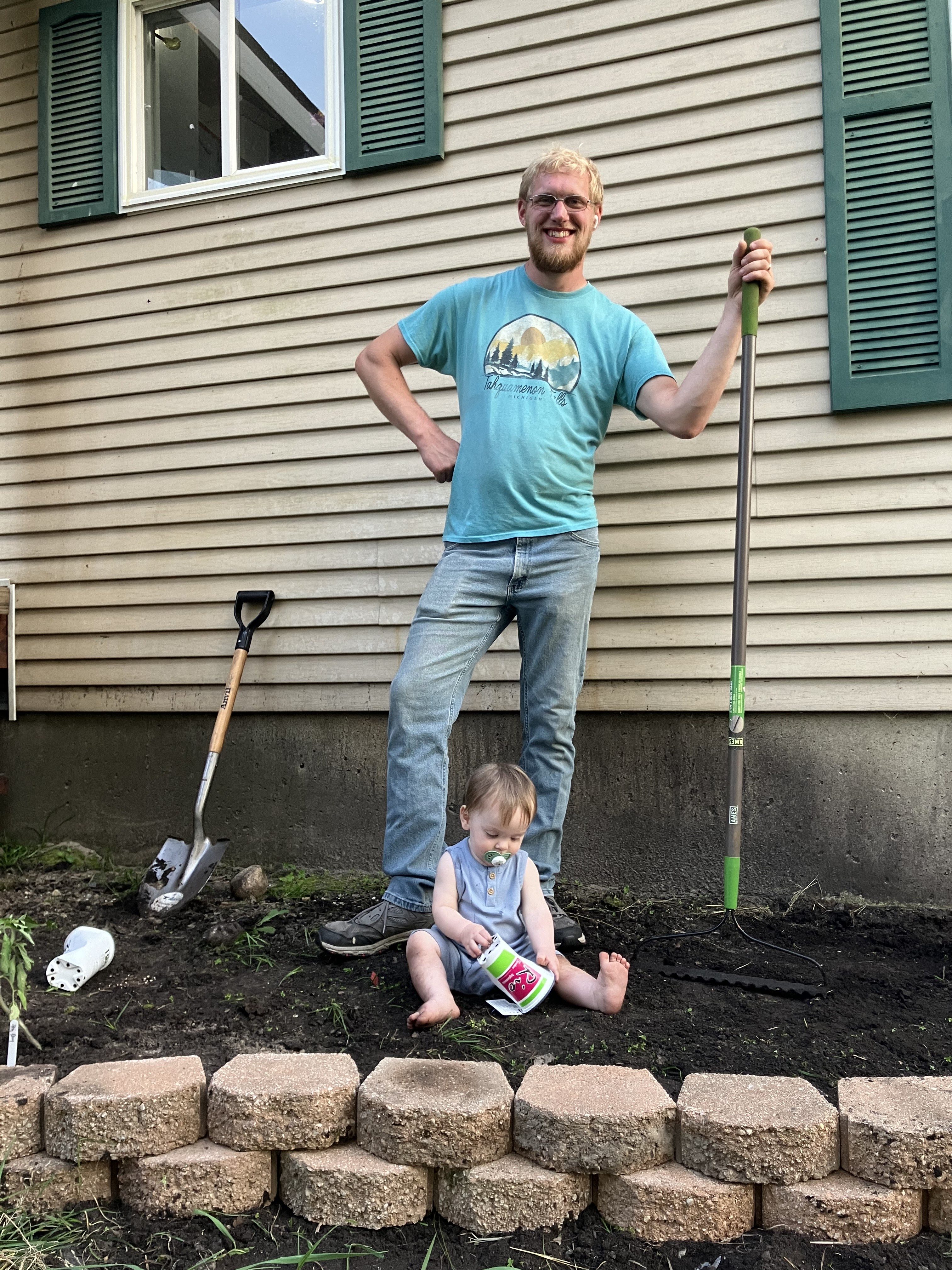 We began making our house feel more like a home. We hung up curtains in the kitchen and started the flower beds in the front yard. Teddy loved to play outside as we worked. I also laid a stone pathway to the front porch. We then put flooring down in Andrew’s and my bedroom which really made the room feel nice. (Thanks, Grandma and Grandpa!)