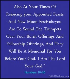 “Also in the day of your gladness, in your appointed feasts, and at the beginning of your months, you shall blow the trumpets over your burnt offerings and over the sacrifices of your peace offerings; and they shall be a memorial for you before your God: I am the Lord your God.”